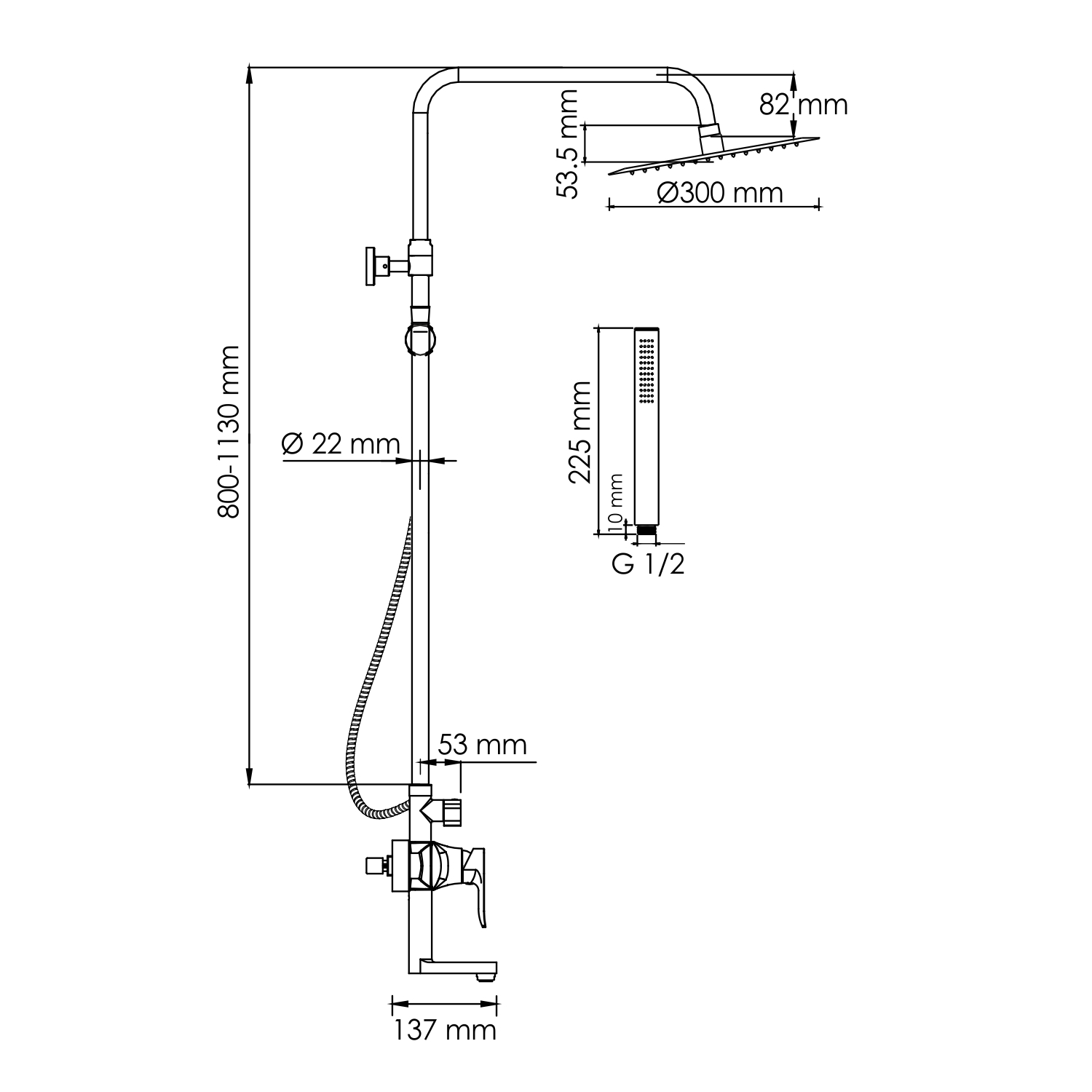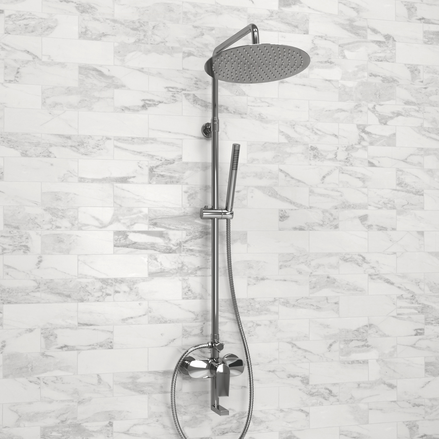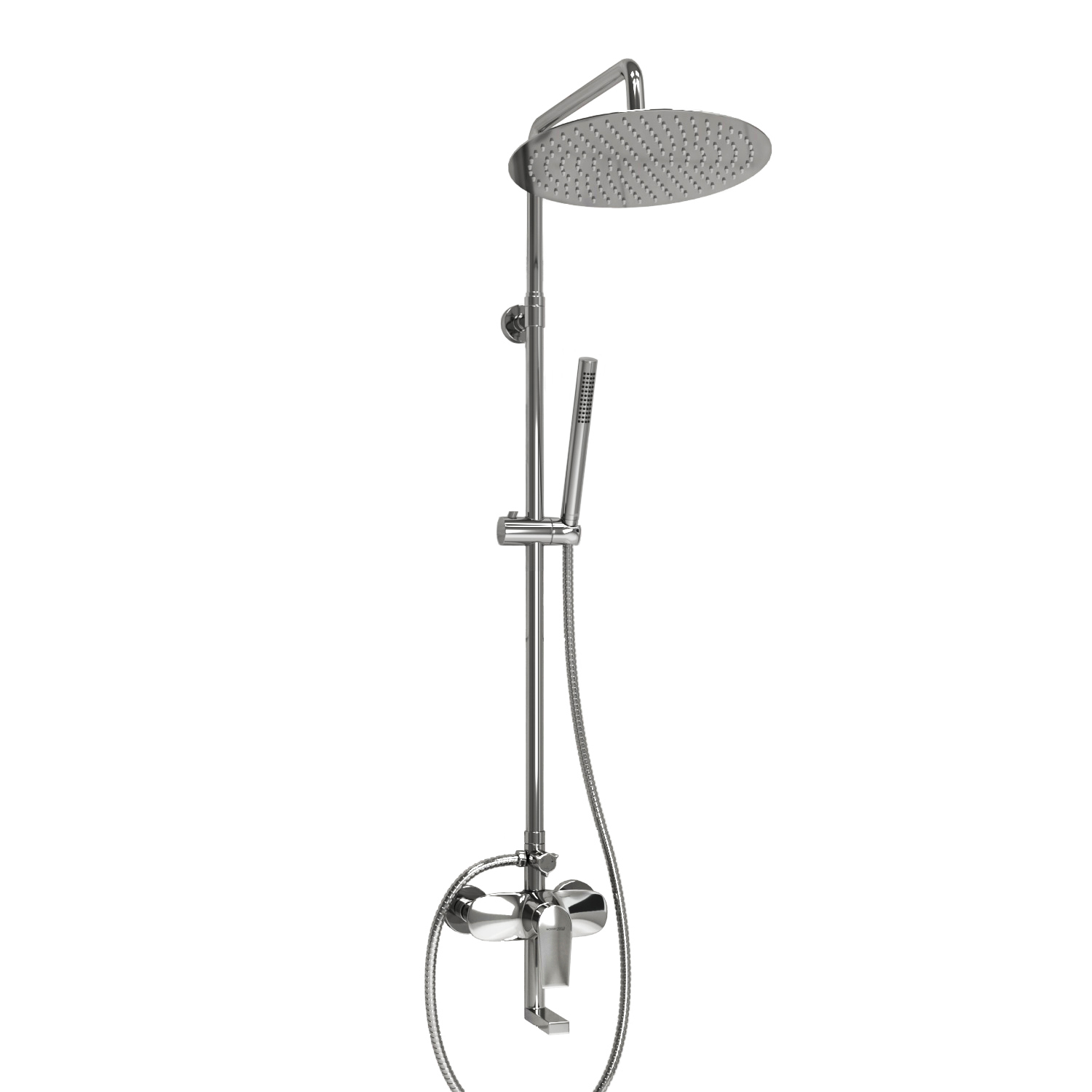 Kopfbrause Edelstahl mit Schwenkgelenk (22° schwenkbar) zum Einstellen des Duschkopfwinkels und integriertem Luftsprudler. Die Düsen bestehen aus Silikon und sind mit einem Anti-Kalk-Schutz-System ausgestattet.